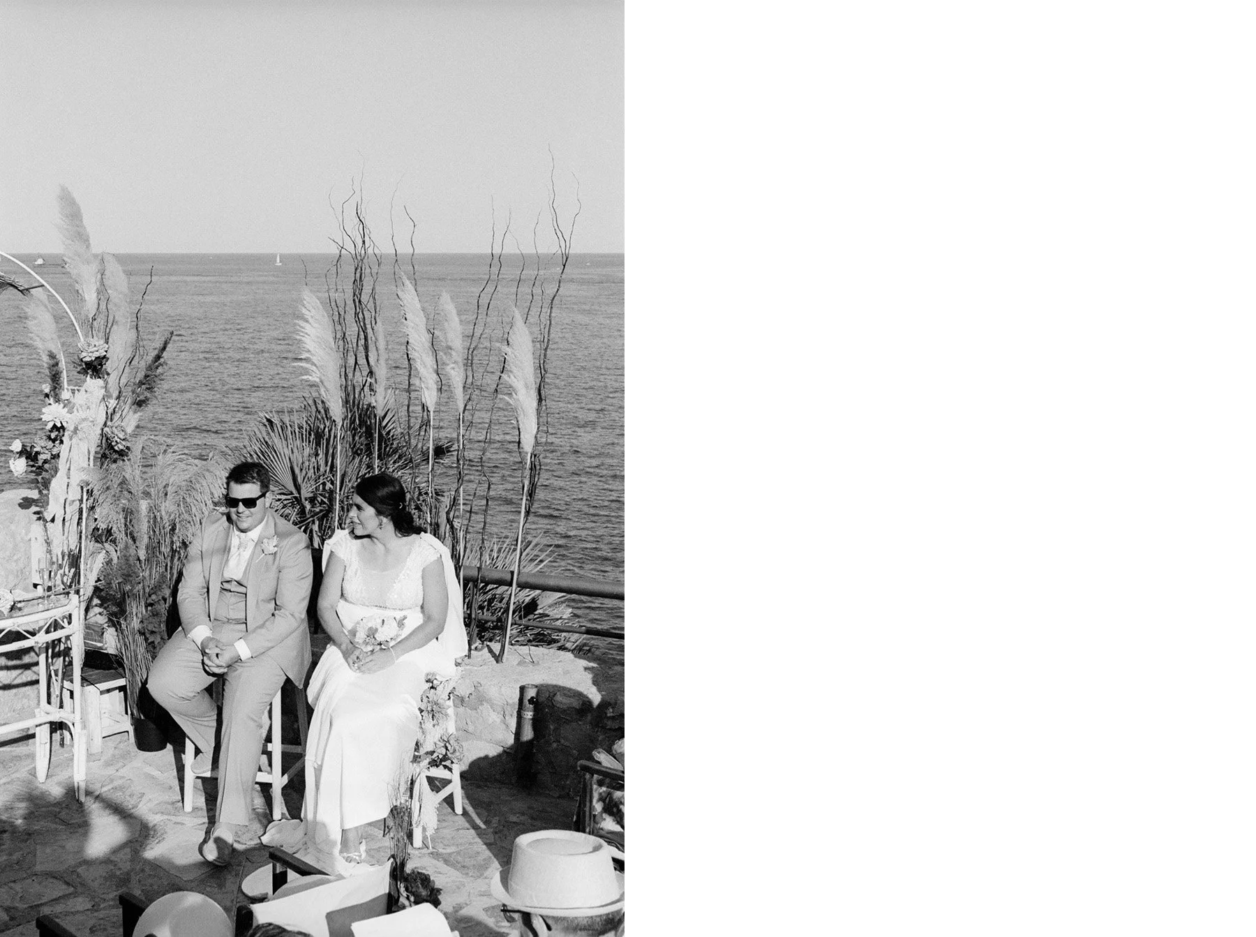 Se prepararon en el hotel Rey Don Jaime de Castelldefels, con ese ritmo lento de las horas previas que lo envuelve todo. Más tarde, en Cala Morisca, en el Garraf, sin grandes artificios; dejando que el entorno y el momento hicieran lo suyo..