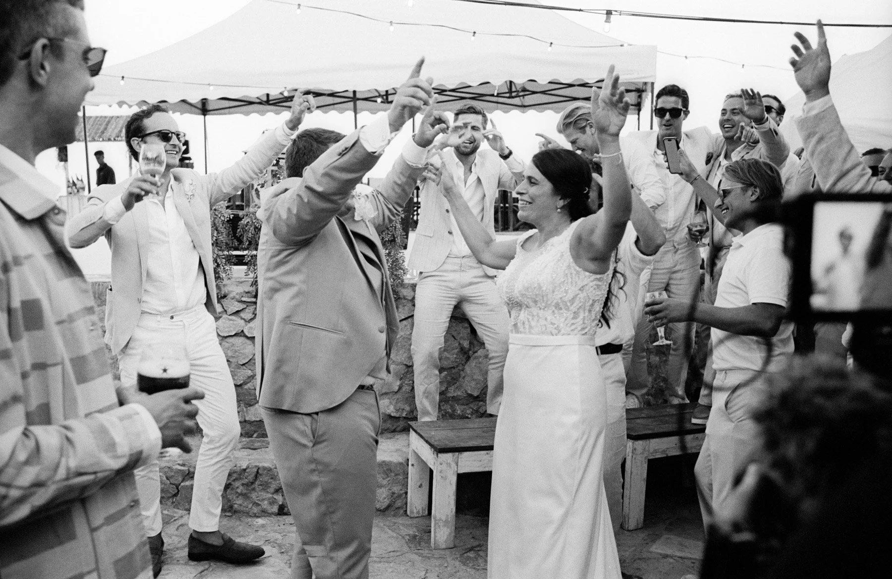 Toda la boda fue fotografiada en analógico, buscando una forma más pausada de mirar, dejando que cada momento ocurra sin prisas. Confiando en la luz, en los gestos y en lo que pasa entre medio. Imágenes con textura, con grano, con ese punto imperfecto que, de alguna manera, se parece mucho a la memoria.